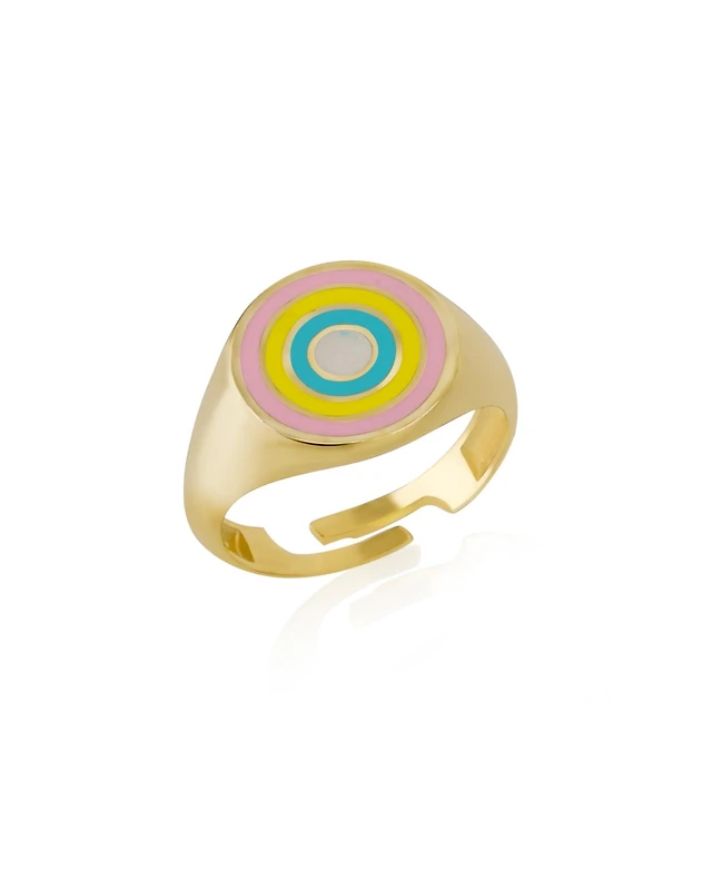Spero London Enamel Five Color Evil Eye Sterling Silver Signet Ring