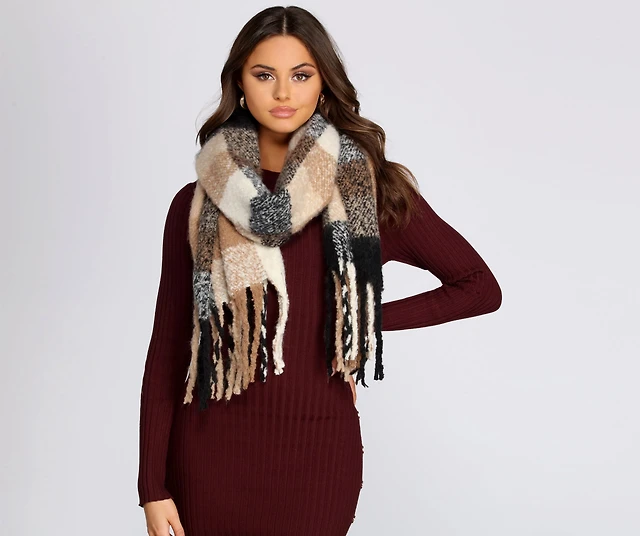 Mango Women's Fringes Detail Diamond-Pattern Scarf