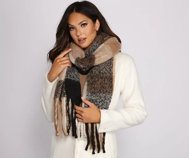 Cuddle Weather Plaid Fringe Blanket Scarf