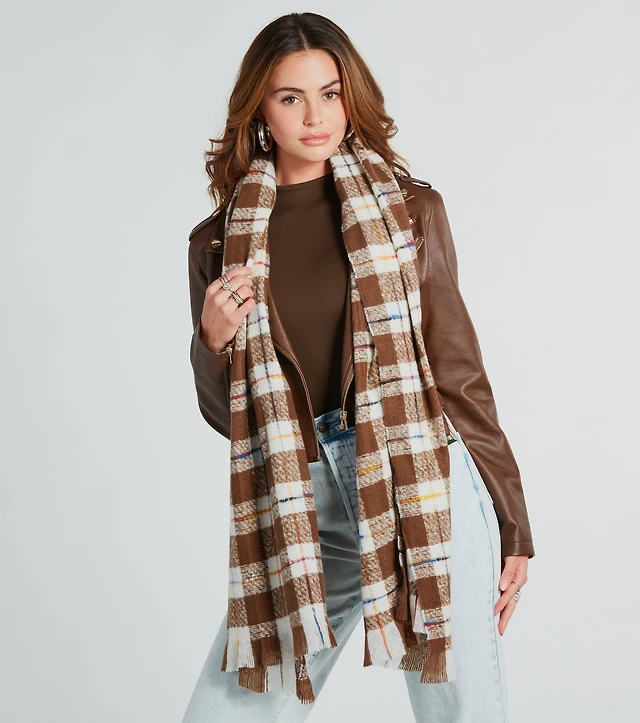 Buffalo Plaid Noodle Fringe Blanket Scarf