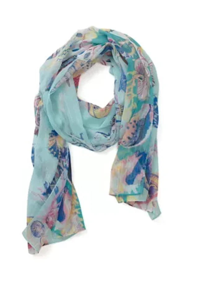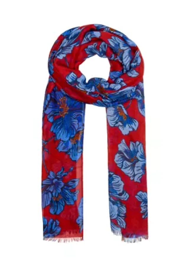 Olsen Multi-Print Scarf with Frayed Edge Trim