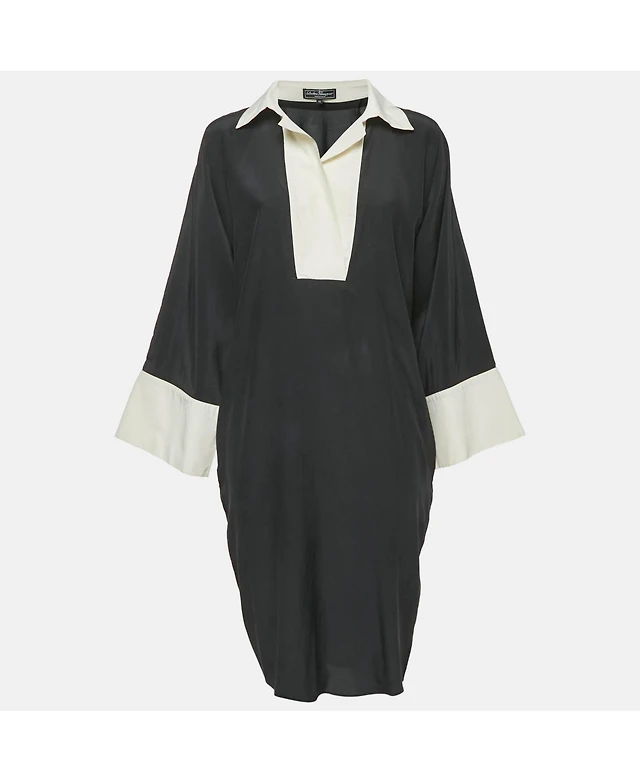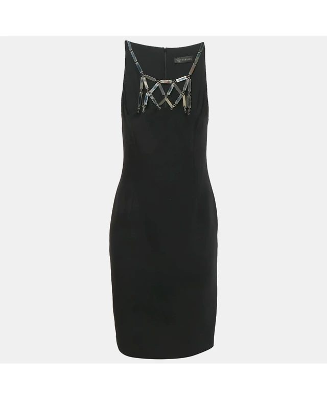 Pre-Owned Versace Women's Black Silk Cut Out Neck Paneled Mini Dress