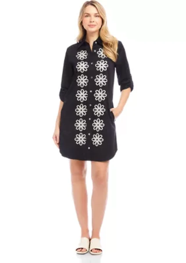 Petite Roll Tab Embroidered Shirtdress