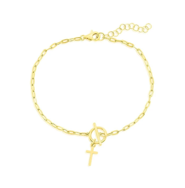 Simona Sterling Silver Crescent Moon Charm Paperclip Toggle Bracelet