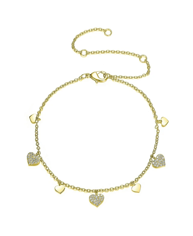 GiGiGirl Sterling Silver 14K Gold Plated Cubic Zirconia Heart Charm Bracelet
