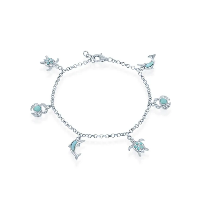 2028 Silver-Tone Turquoise Color Accents and Multi-Charm Bracelet