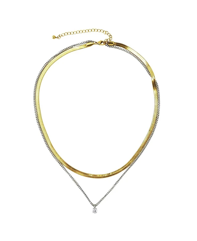 Unwritten Silver Plated Clear Cubic Zirconia Infinity Duo Necklace with Studded Second Chain