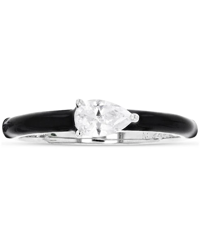 Cubic Zirconia Pear & Hand-Painted Enamel Ring Sterling Silver