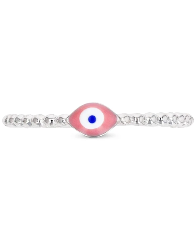 Evil Eye Hand-Painted Enamel Beaded Ring Sterling Silver