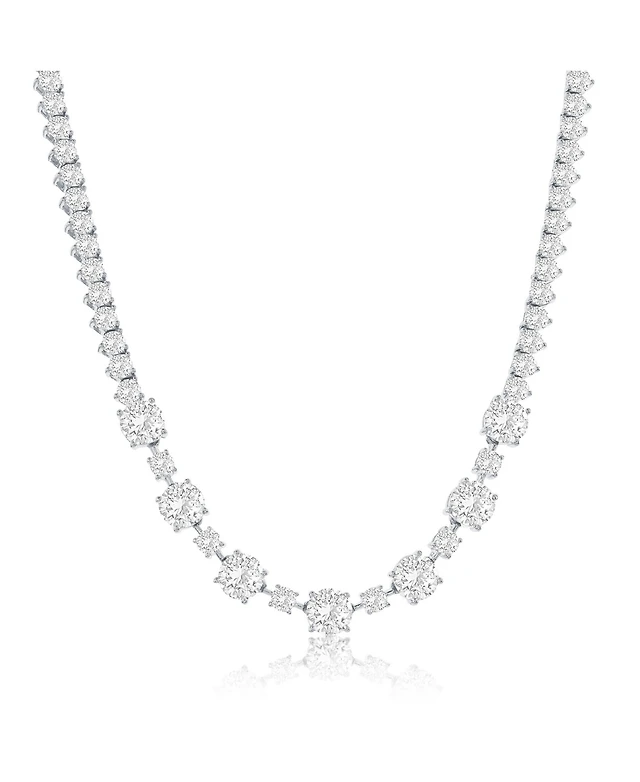 Lab Created Rhodium Plated Sterling Silver Women's Created Moissanite 5MM Tennis Necklace