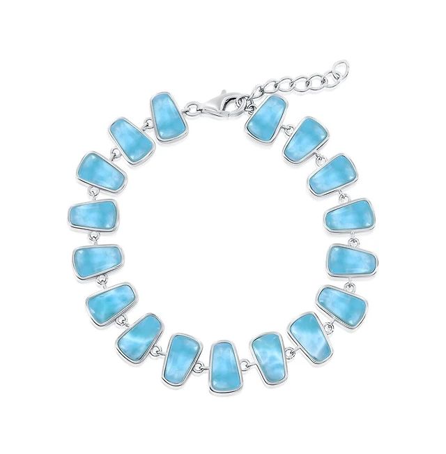 Sterling Silver Large Hexagon & Small Multi-Shaped Larimar Necklace