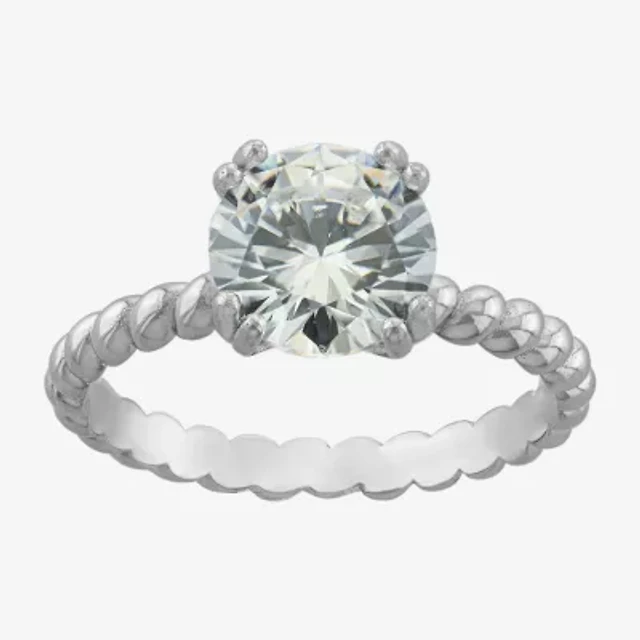 Silver Treasures Womens Cubic Zirconia Sterling Silver Solitaire Engagement Ring