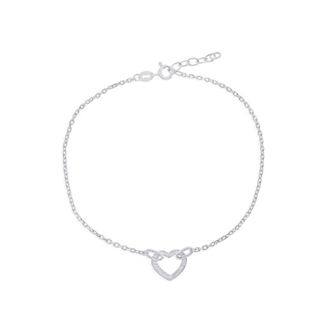 Simona Sterling Silver Double Strand & Open Heart Anklet
