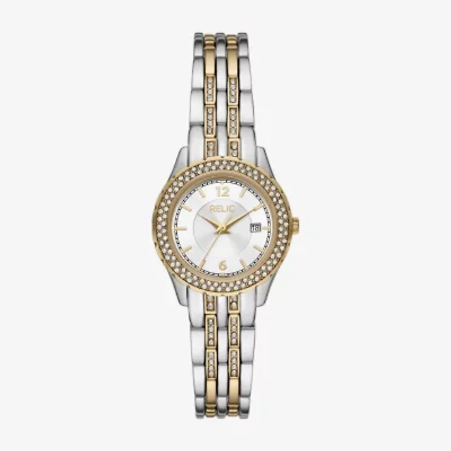 Relic By Fossil Womens Crystal Accent Two Tone Bracelet Watch Zr12656