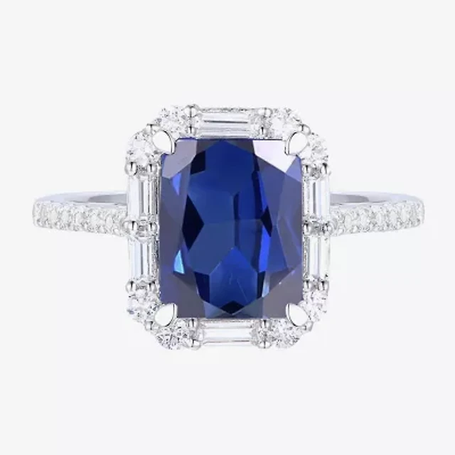 Sterling Silver Square Blue Inlay Synthetic Opal Ring