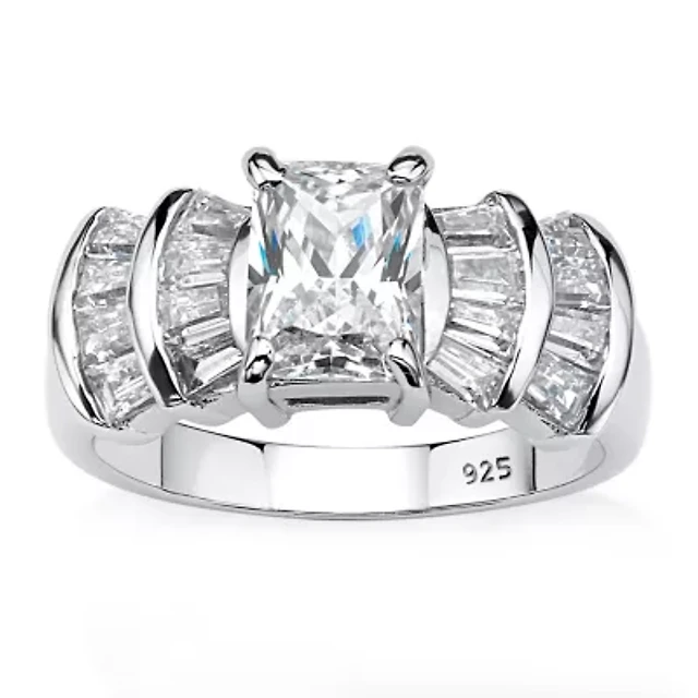 Silver Treasures Womens Cubic Zirconia Sterling Silver Solitaire Engagement Ring