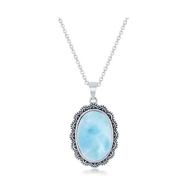 Sterling Silver Oval Larimar Filigree Design Oxidized Necklace