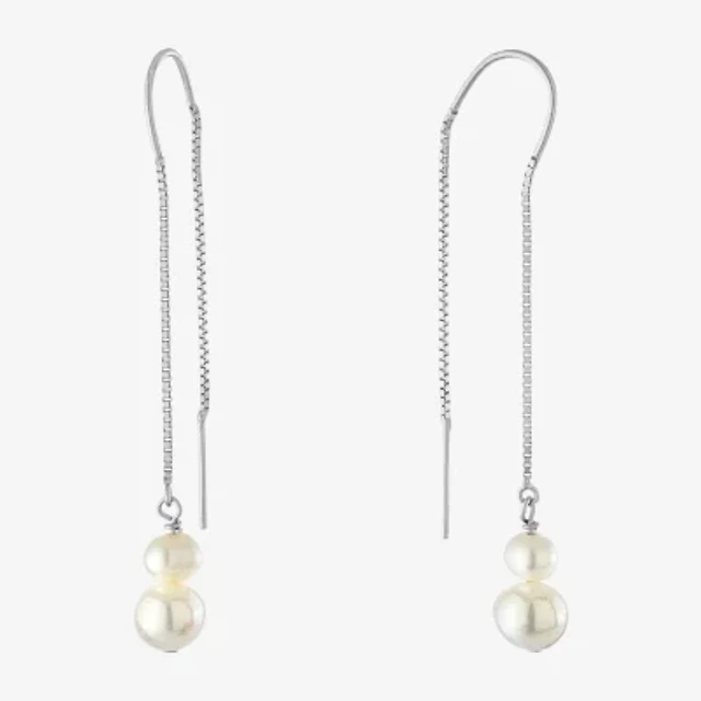 Silver Treasures Womens White Cultured Freshwater Pearl Sterling Silver Drop Earrings