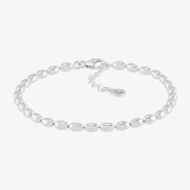 Simona Sterling Silver Diamond Cut Small Oval Beads Anklet