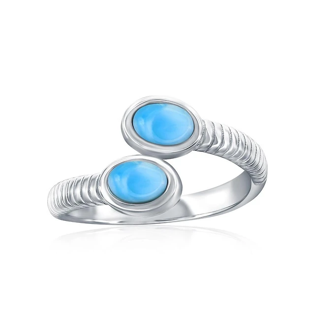 Sterling Silver, Oval Larimar, Overlapping Lined Ring