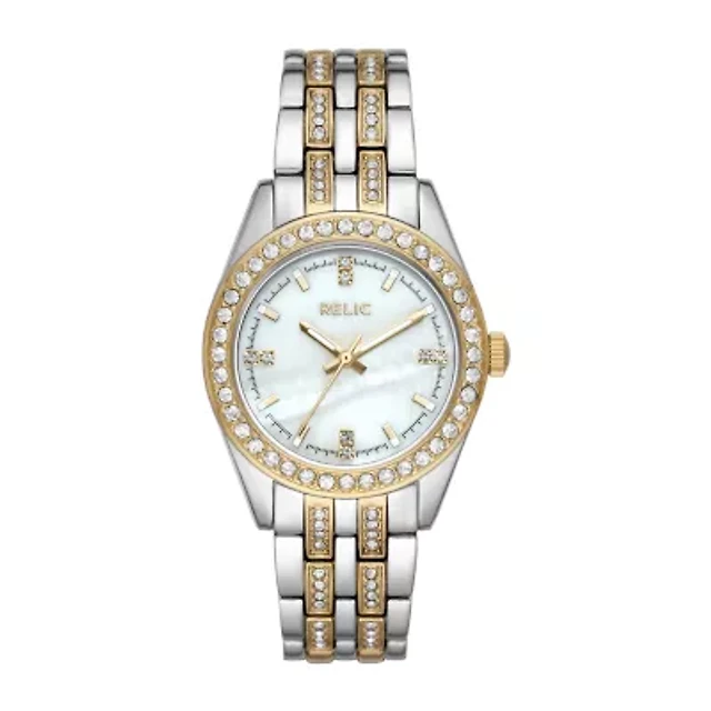 Relic By Fossil Iva Womens Crystal Accent Two Tone Bracelet Watch Zr34536