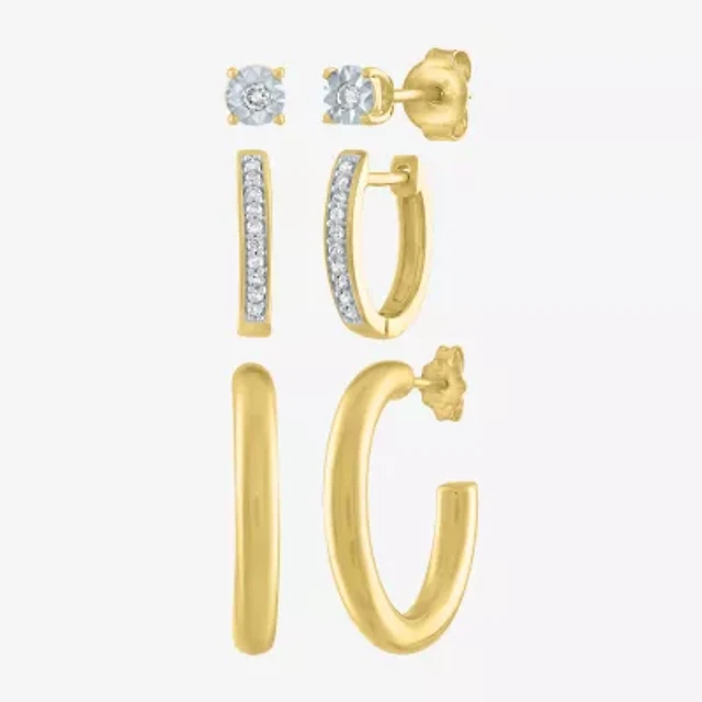 Diamond Addiction Womens 1/7 CT. T.W. Natural White Diamond 14K Gold Over Silver Sterling Silver 3 Pair Earring Set