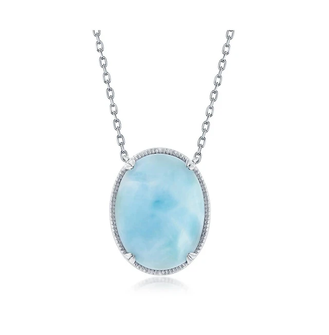 Sterling Silver Oval Turquoise & Round Blue Topaz Gem Pendant