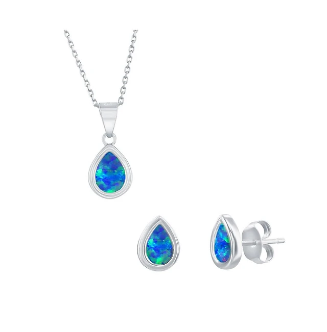 Simona Sterling Silver, Pave Cz Square Necklace & Earrings Set