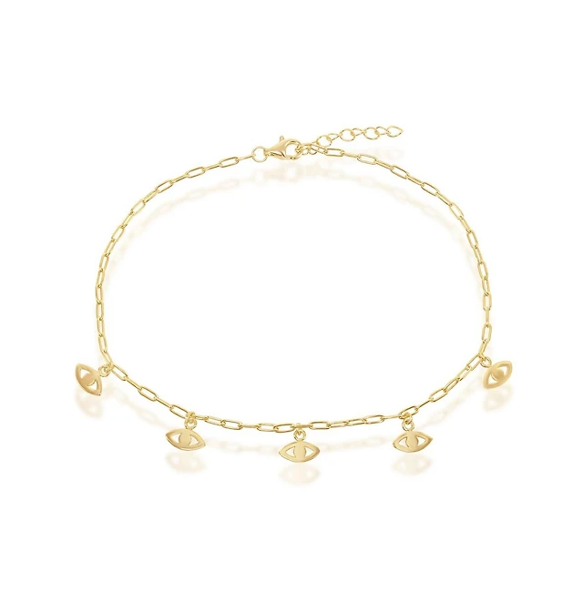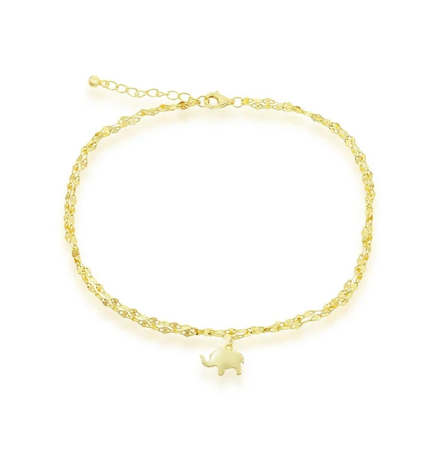 Simona Sterling Silver Double Strand Mirror Chain w/ Cross Anklet