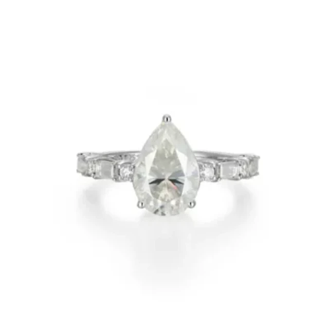 Lab Created Rhodium Plated Sterling Silver Women's Moissanite Enagement Ring