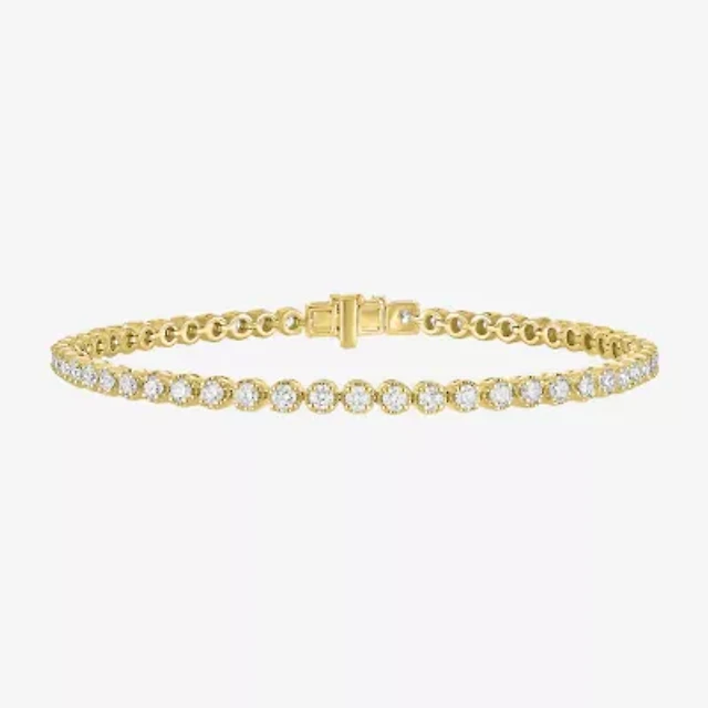 (G-H / Si2-I1) Womens 3 CT. T.W. Lab Grown White Diamond 14K Gold Over Silver 7.25 Inch Tennis Bracelet