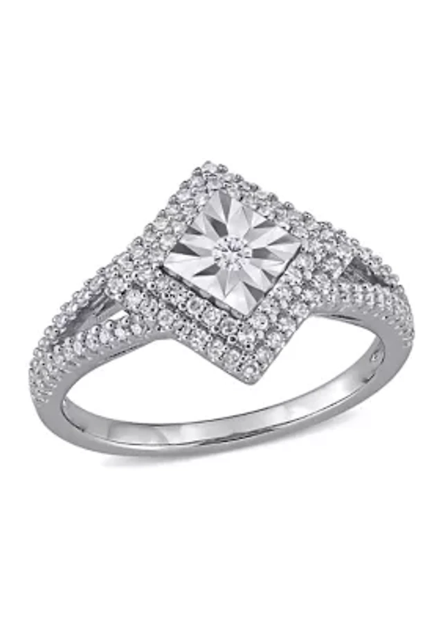 Silver 1/ Ct Miracle Princess Solitaire Stud Earrings