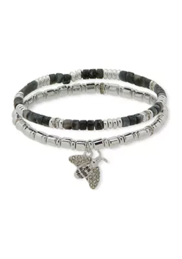 2 Row Metal Beaded Stretch Bracelet Set