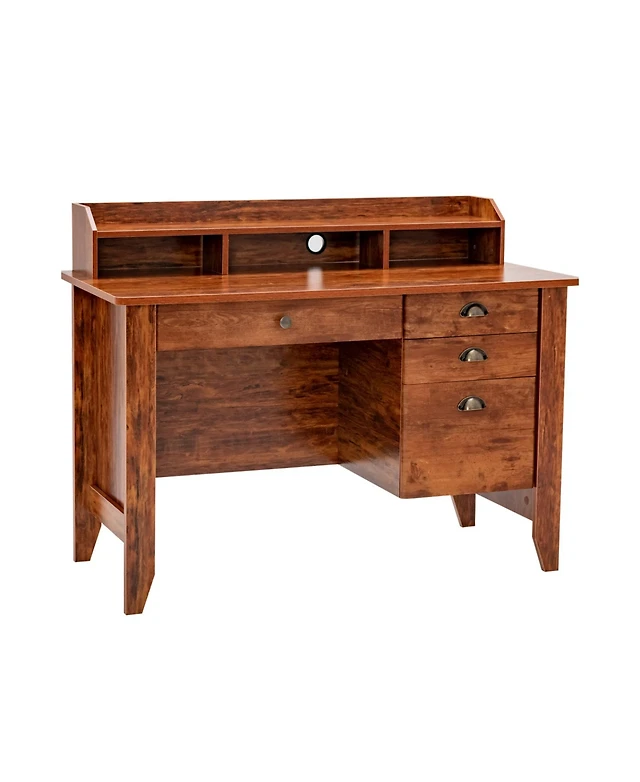 Mecale Vintage Computer Desk with Storage Shelves and 4 Drawers
