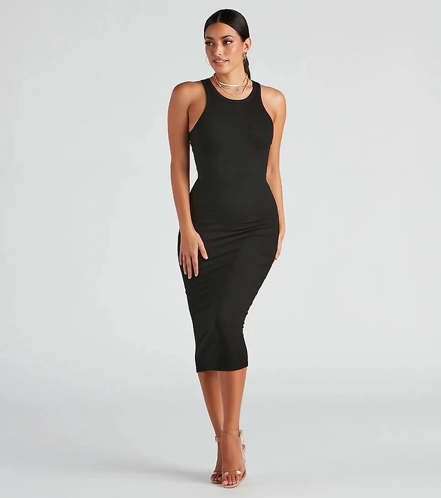 Honey and Rosie Sateen Sleeveless Midi Fitted Tank Dress