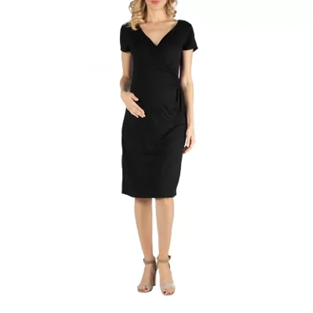 24/7 Comfort Apparel Faux Wrapover Dress with Cap Sleeves