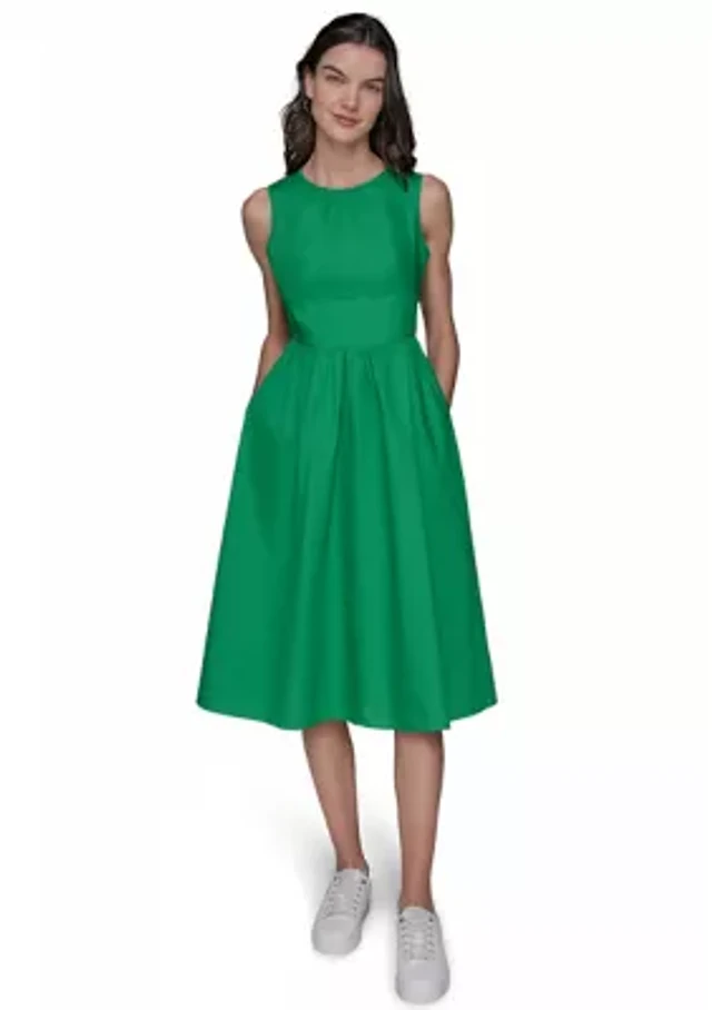 Women's Sleeveless Tie Back Cotton Midi Dress