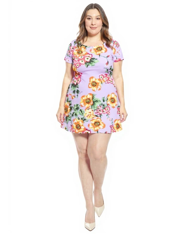 24seven Comfort Apparel Plus Floral Round Neck Shift Dress