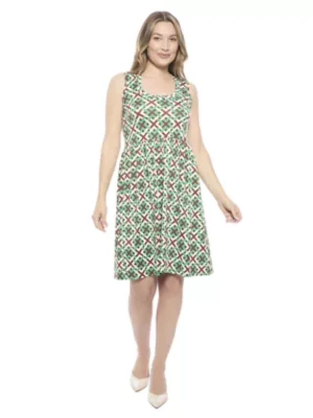24seven Comfort Apparel Women's Geometric Sleeveless Fit N Flare Knee Length A-Line Dress