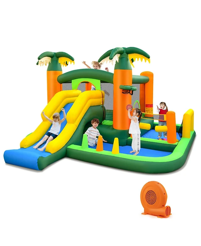 Gymax Tropical Inflatable Bounce Castle 8-in-1 Giant Jumping House with 680W Blower