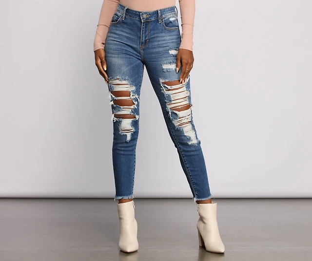 YMI Jeanswear Mid Rise Ripped Skinny Jeans