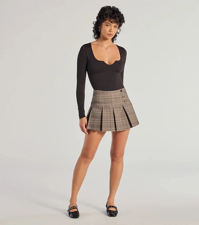 Classic Look Plaid Pleated Woven Skort