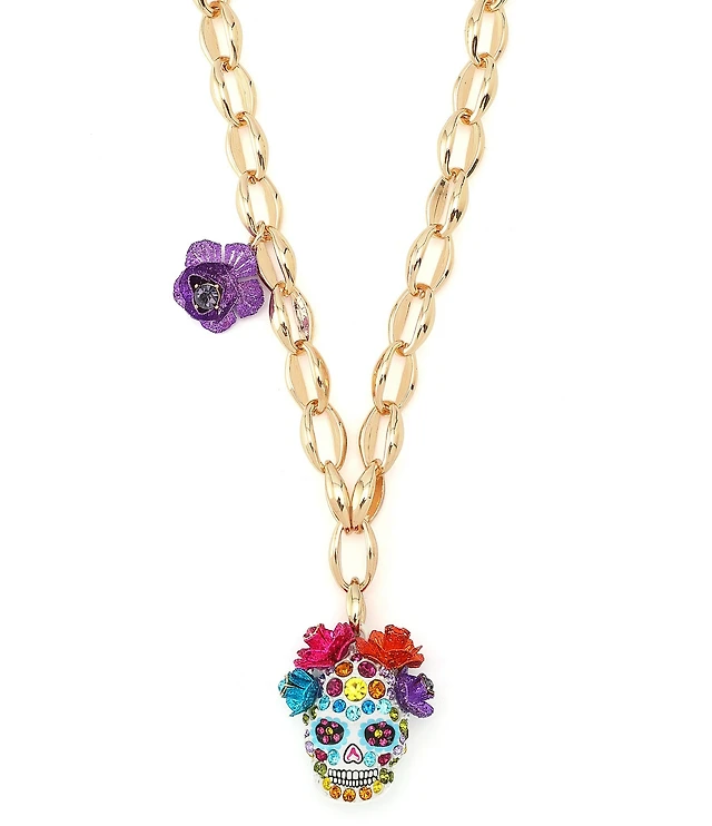 Betsey Johnson Faux Stone Sugar Skull Pendant Necklace
