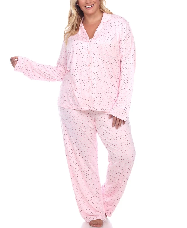 Women's 2 Piece Long Sleeve Heart Print Pajama Set