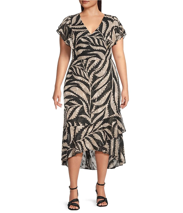 Plus Flutter Sleeve Smocked Waist Midi Dress