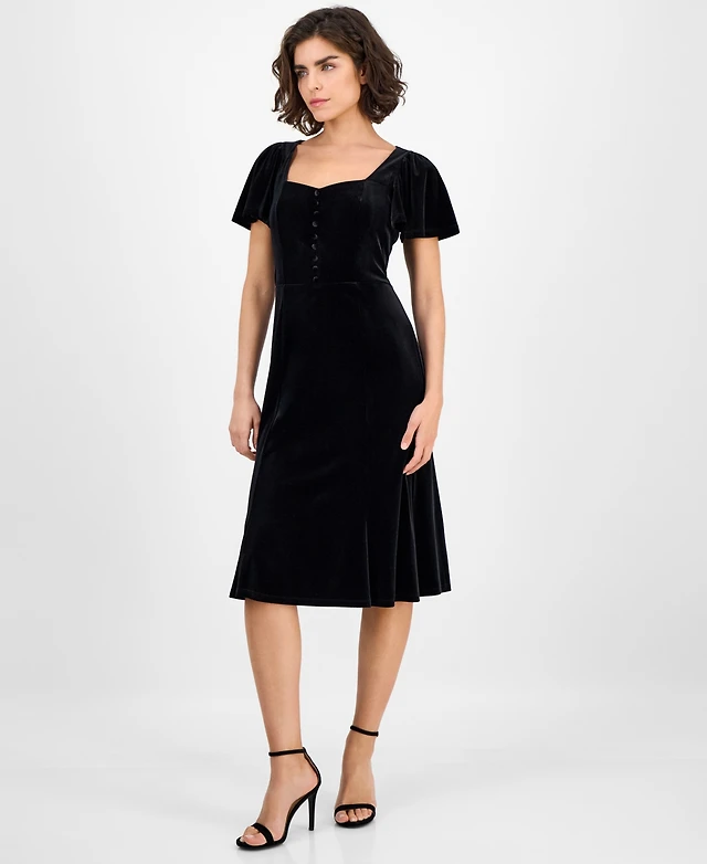 Ann Taylor Petite Flutter Sleeve Midi Flare Dress Pink Orchid Women's