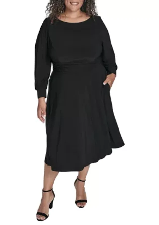 Dkny Women's Long Sleeve Empire Waist Midi Dress