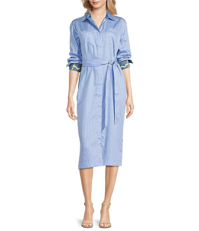 Standards & Practices Plus Long Sleeve Midi Shirt Dress Floral Print Tie-Front