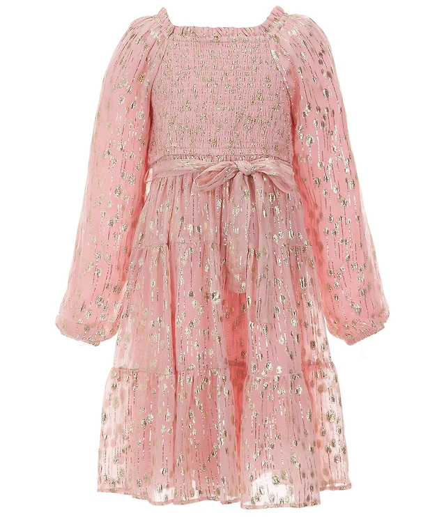 A Loves A Big Girls Long Sleeve Tiered Lurex Midi Dress