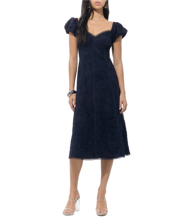 Sure To Adore Puff Sleeve A-Line Midi Dress
